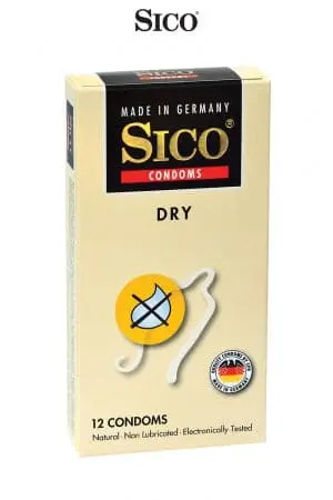 12 préservatifs non lubrifiés SICO 100% Made in Germany, gage de très haute qualité. Préservatifs en latex de caoutchouc naturel, transparents, non lubrifiés, pour une pratique sexuelle naturelle tout en étant protégé.