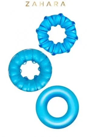 Set de 3 anneaux de pénis de marque Zahara, en TPR extensible, pour améliorer la qualité de l’érection masculine et sa durée.