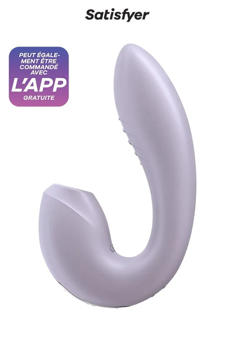 Conçu en silicone super doux, le Satisfyer Sunray Lilas est un stimulateur féminin de grande qualité, rechargeable et étanche, flexible au niveau de sa tige, qui propose la stimulation simultanée ou indépendante du clitoris par ondes de pression et du vagin (tout particulièrement le point G) par vibrations.