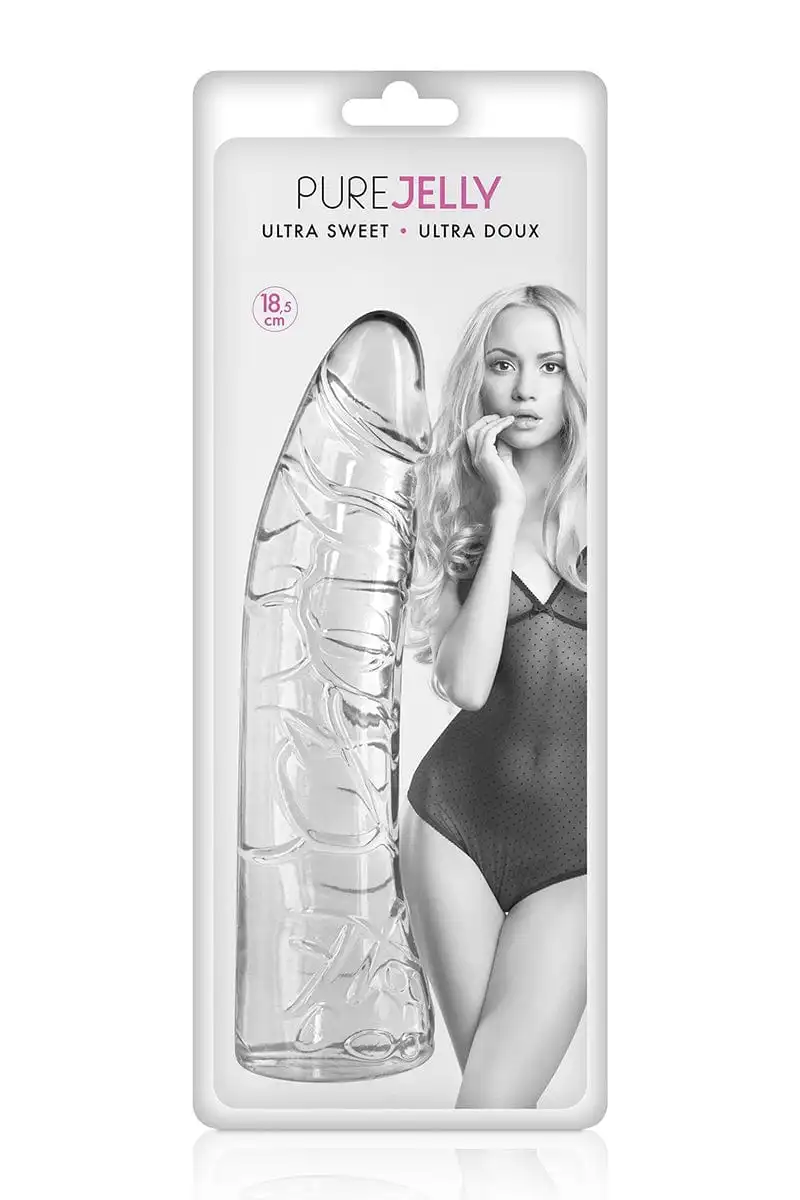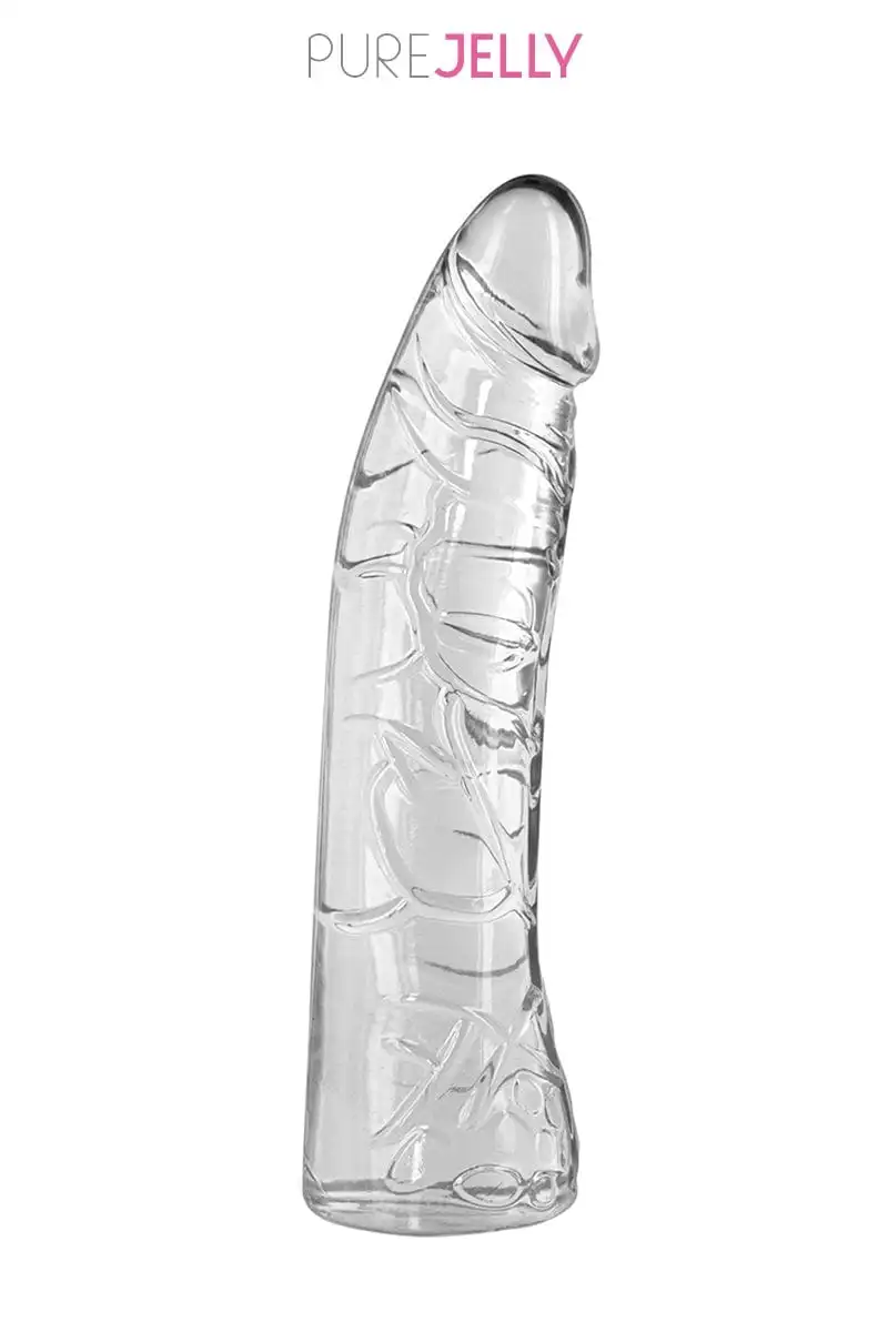 Dong de qualité, couleur cristal, fabriqué en « jelly », à la fois doux, ferme et flexible avec veines et gland réalistes, conçu ar la marque Pure Jelly.