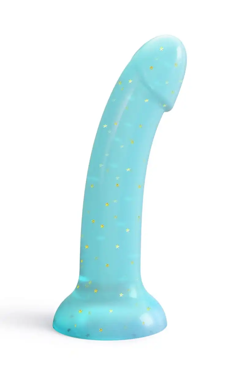 - Gode élégant et fun: Le jouet Dildolls Nightfall est fabriqué en silicone bleu transparent et d’étoiles dorées pour une expérience coquine autant esthétique que jouissive.