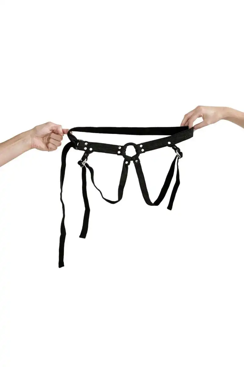 Ajustable par ses anneaux, le harnais gode ceinture est taille unique (Taille 34-44). Il possède une large ceinture de hanches et deux sangles latérales pour les jambes qui maintiennent le jouet en place. Les sangles peuvent être ajustées selon vos besoins grâce aux anneaux situés à l’avant. Les anneaux sont spécialement conçus pour faciliter la fixation et le retrait du harnais.