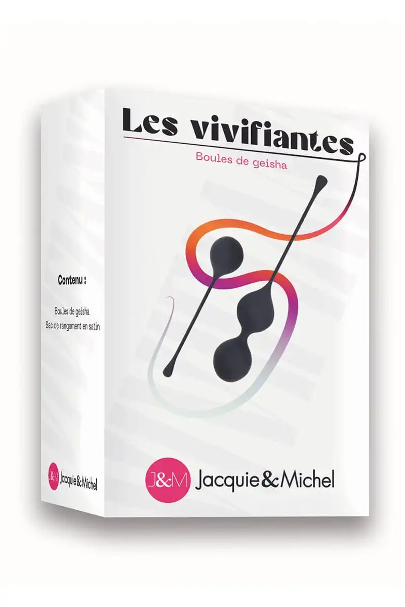 La marque Jacquie et Michel propose « Les vivifiantes », un set de 2 boules de Geisha, en silicone haute qualité, de différentes poids : 1 mono boule (27g) + 1 double boule (48g), pour la pratique des exercices de Kegel, la musculation du plancher pelvien ou simplement pour le plaisir.