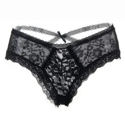 Tanga Noir Très Sexy En Dentelle Fine Avec Noeud Satiné – Paris Hollywood