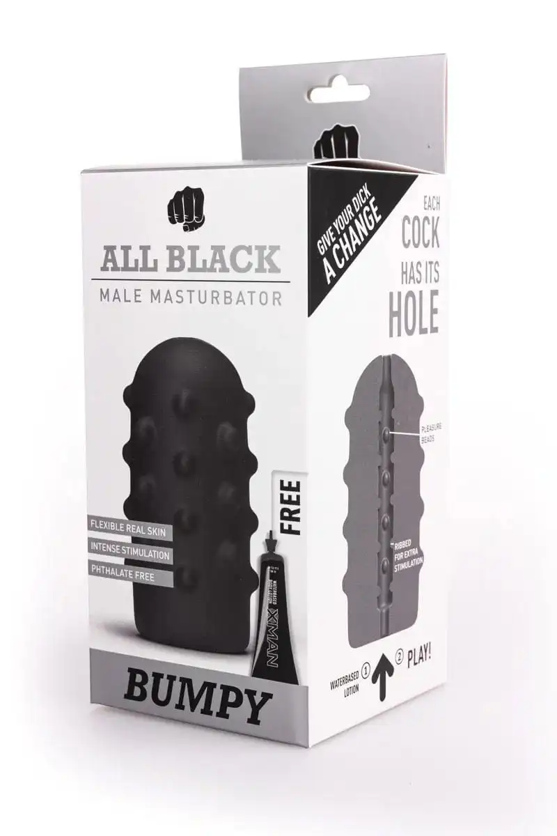 Découvrez le stimulateur de pénis ultime avec le masturbateur pour homme Bumpy de la marque All Black. Avec sa texture interne Real Skin Touch (RST), ce masturbateur flexible et extensible offre des sensations naturelles incroyablement réalistes pour une stimulation intense.