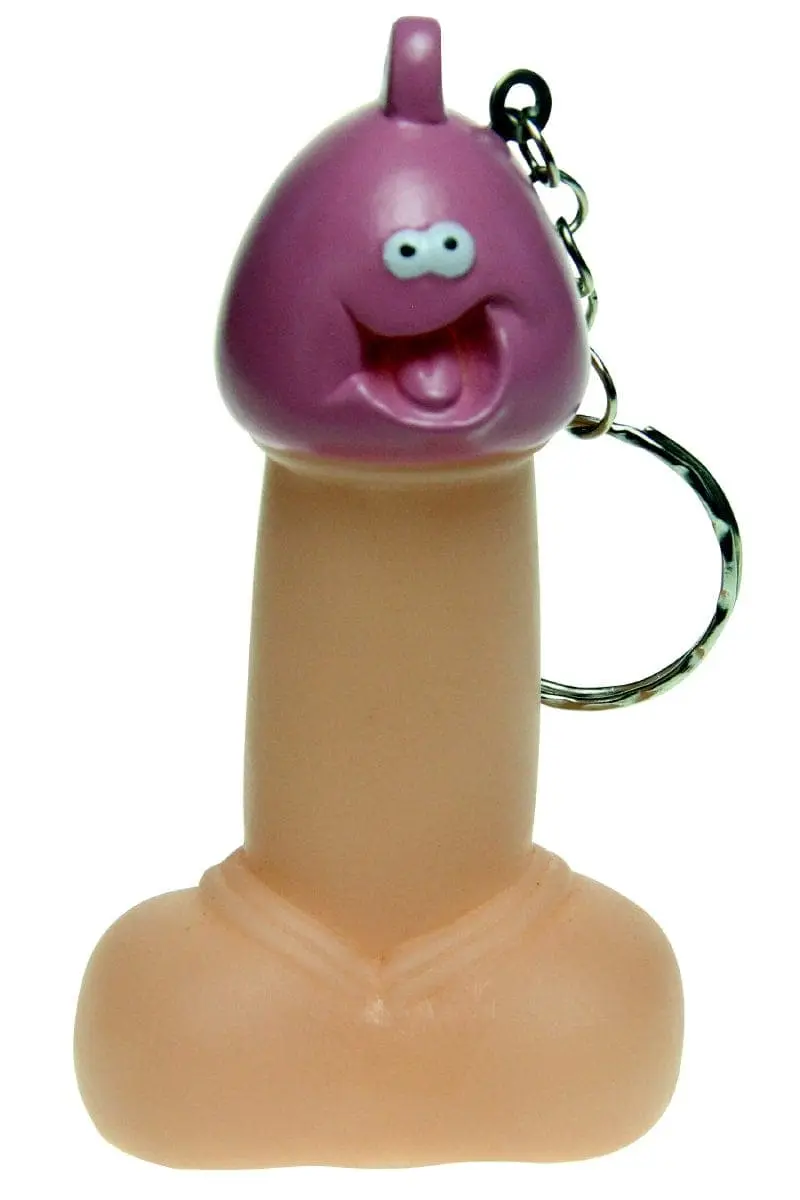 Pénis porte clé humoristique avec à l’intérieur un sifflet donnant l’impression que le pénis couine lorsqu’on le presse.