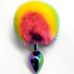 Plug Anal En Métal Et Ponpon Multicolore 7×2,8 Cm Taille S – Wooomy