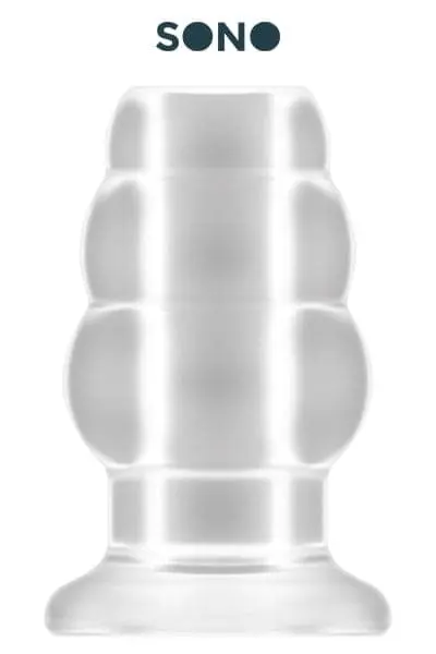 Plug anal translucide grande taille, creux au milieu, 12,7 cm de long par 7,1 cm de diamètre maxi.