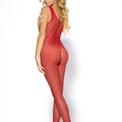 Combinaison Rouge Moulante En Résille Fantaisie Bianca – Anaïs Lingerie