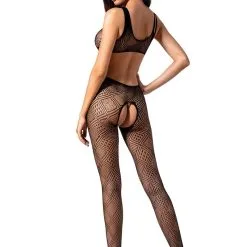 Passion Bodystockings Combinaison Collant Ouvert Ă Jarretelles En RĂ©silles Noire BS046 – Passion