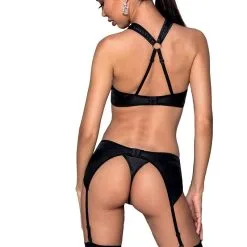Passion Lingerie Ensemble Sexy 3 Pièces Soutien-gorge + Porte-jarretelles + String – Passion