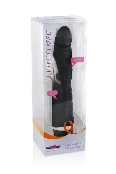 Un gode vibrant pour hommes et femmes en silicone noir et étanche de chez Seven Créations