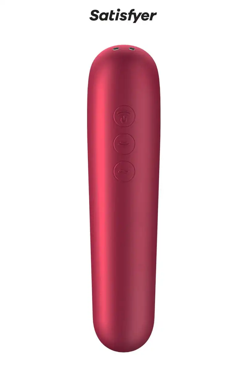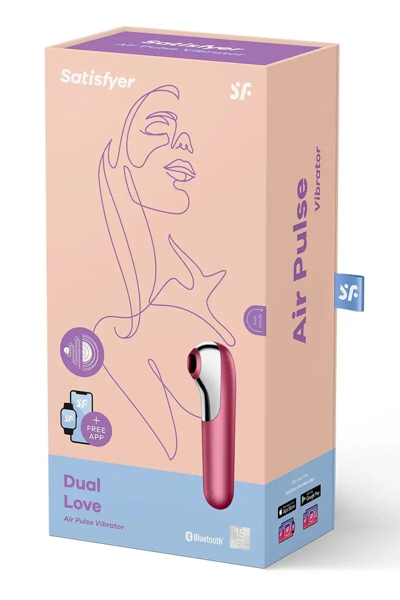 Le Satisfyer Dual Love est un sextoy connecté compatible Bluetooth, à la fois un stimulateur clitoridien par ondes de pression et par vibrations, et un vibromasseur spécial point G.